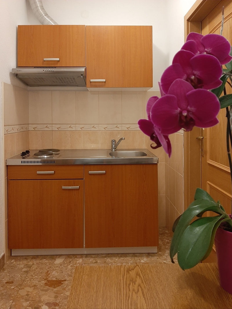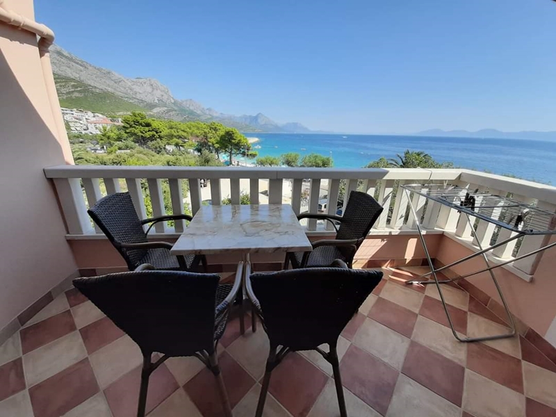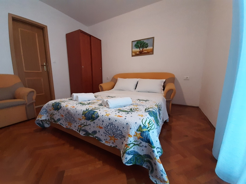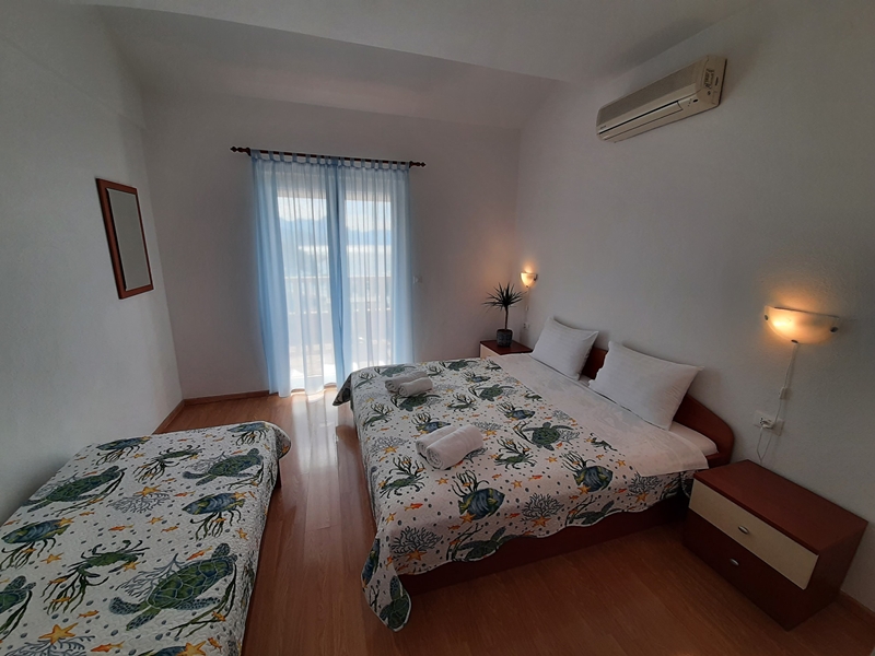 Sea view comfortable apartment with balcony / terrace. Mini kitchen has standard equipment and is located in a separate area from the bedroom. A comfortable sofa bed 140 x 190 cm is in the pass-through living room where the SAT TV is. King-size bed 180 x 190 cm and single bed 90 x 190 cm is situated in the room. It is possible to accommodate a baby cot.